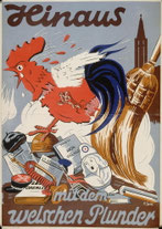 Balayons ce fatras welche est le thème d'une célèbre affiche de propagande nazie conçue par Alfred Spaety alors étudiant à l’École des Beaux Arts de Strasbourg. Il avait planché sur un exercice imposé loin de se douter que celui-ci allait provoquer son incarcération après la libération. On y voit, pêle-mêle, jetées aux orties les références à la France comme la tour Eiffel, le béret, Marianne, Hansi, le Journal la République de Strasbourg et les romans patriotiques d’Émile Zola ou de René Bazin.